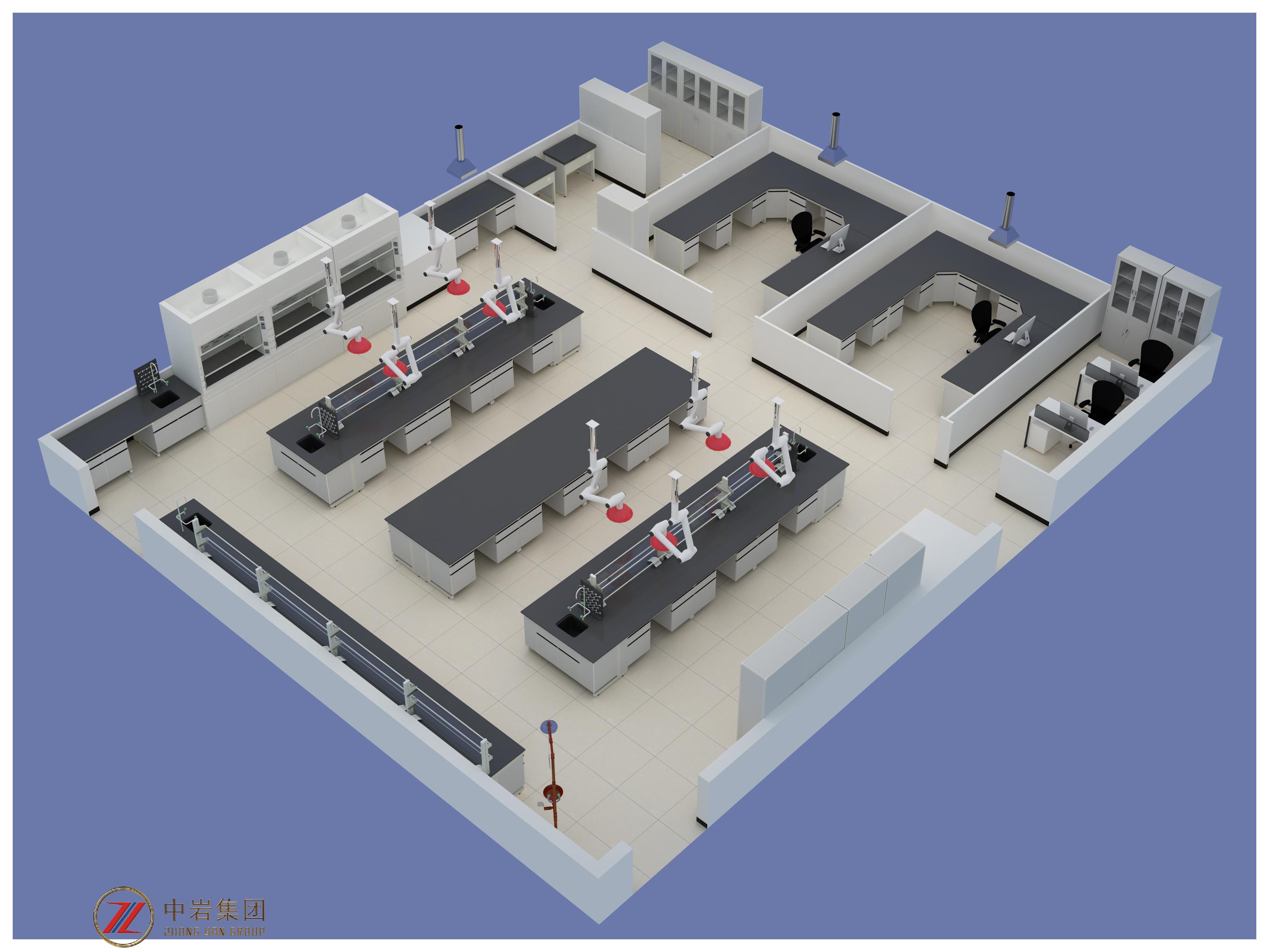 福建中巖實驗室主要從事:①實驗室家具(通風柜、中央臺、邊臺、藥品柜、試劑柜等)鋼制產(chǎn)品的設計研發(fā)及生產(chǎn)安裝,②實驗室的裝飾裝修工程設計與施工(隔斷、地面、吊頂、給排水、強弱電等),③暖通系統(tǒng)工程設計與施工(凈化空調(diào)、新風系統(tǒng)、智能化通排風系統(tǒng)(通風柜、原子吸收罩、萬向罩、生物安全柜、房間整體等)、壓力梯度控制系統(tǒng)、PLC控制系統(tǒng)等),④廢氣廢水集中處理工程設計與安裝(噴淋塔中和處理、活性炭箱吸附處理、UV光解處理等),⑤集中供氣系統(tǒng)設計與安裝、⑥集中純水系統(tǒng)設計與安裝,⑦各個功能型實驗室:中心實驗室、分子實驗室、病理實驗室、高通量測序?qū)嶒炇摇游飳嶒炇摇z測實驗室、前處理實驗室、冷庫等安裝工程;